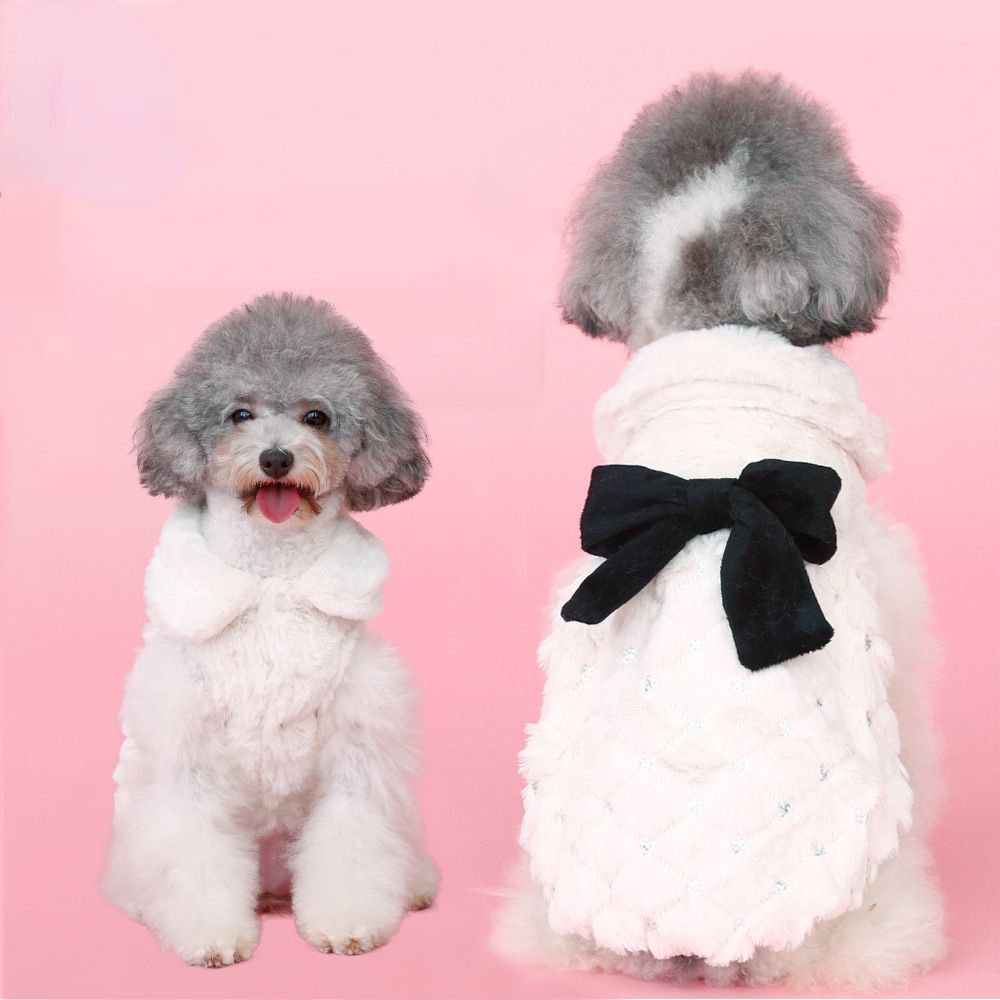 White elegant bow plush coat dog clothes Huayuan warm clothing breathable pet clothes in autumn and winter White elegant bow plush coat dog clothes Huayuan warm clothing breathable pet clothes in autumn and winter