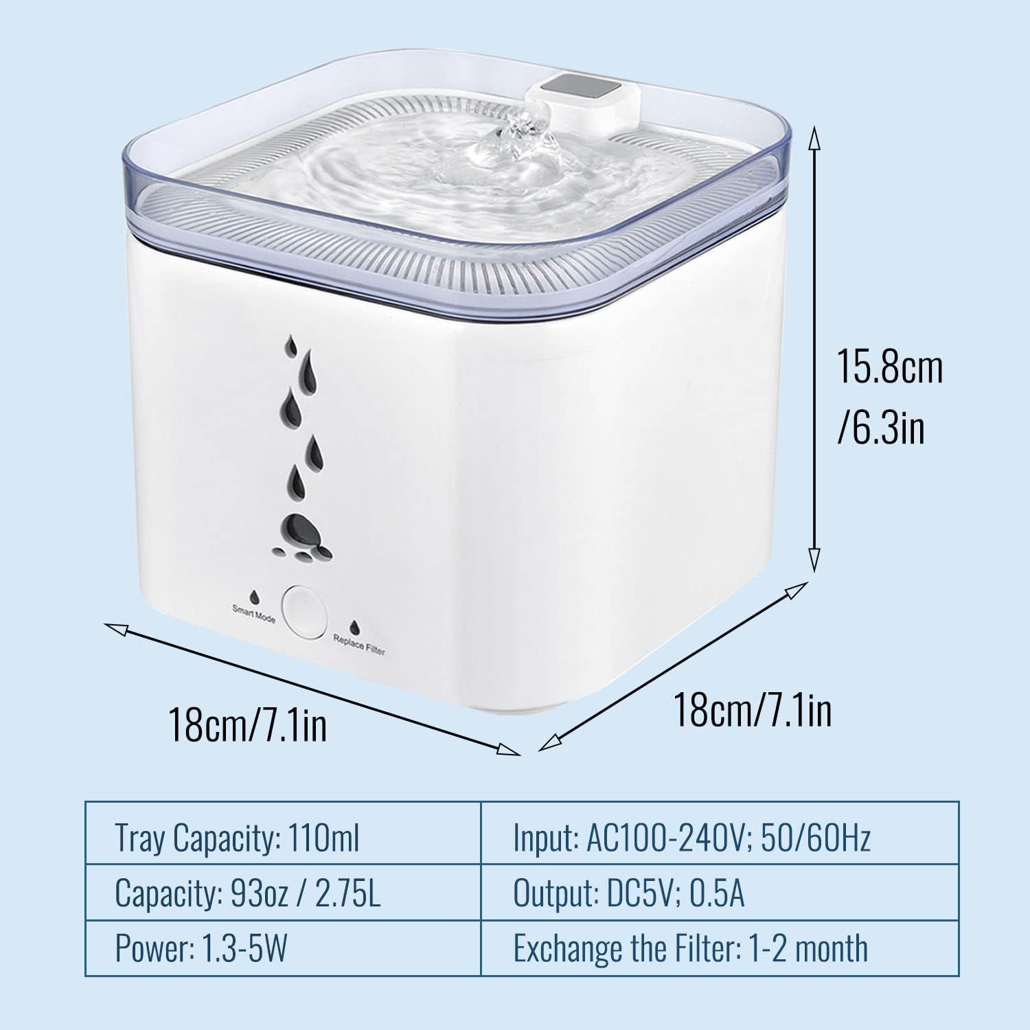 Pet Water Fountain, 93oz/2.75L Automatic Cat and Dog Water Fountain Water Dispenser Ultra-Quite Easy to Clean and Assemble