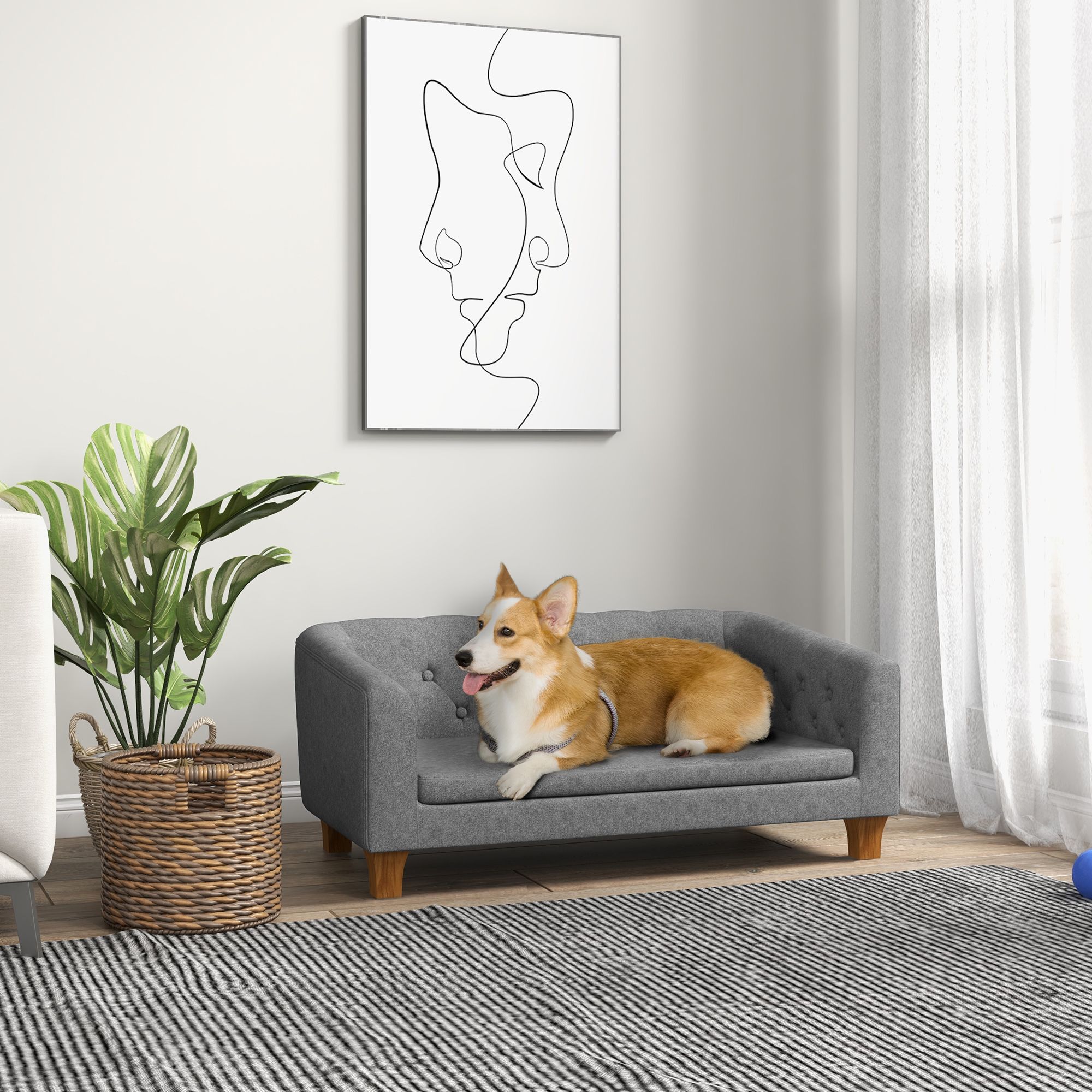 Treat your puppy like royalty with our PawHut dog sofa bed. The soft cushion provides person-level comfort for your pup, letting them lounge all day. It has a durable wood frame to withstand roughhousing and a removable cover to help keep it clean. The installation process is simple and hassle-free. Give your dog the luxury they deserve while keeping your home stylish. Its sleek and elegant design will complement any room in your home, making for a chic addition that fits in.