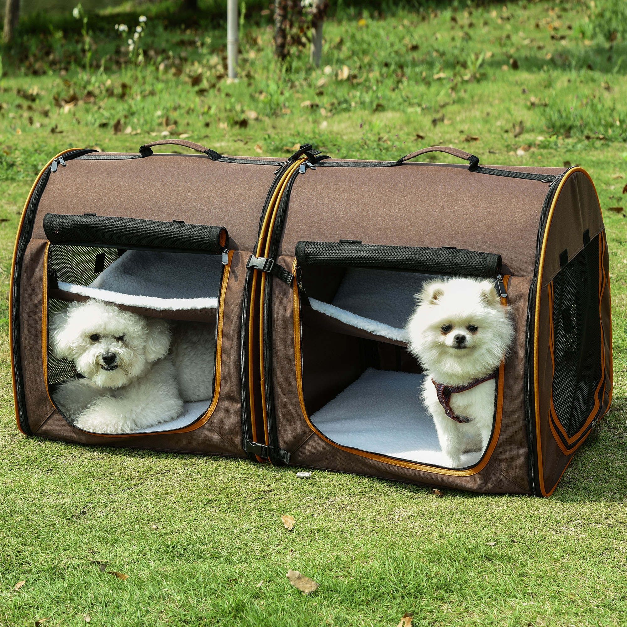 39" Portable Soft-Sided Pet Carrier With Divider, Dual Compartment, Soft Cushions, & Storage Bag - Brown 39" Portable Soft-Sided Pet Carrier With Divider, Dual Compartment, Soft Cushions, & Storage Bag - Brown 39" Portable Soft-Sided Pet Carrier With Divider, Dual Compartment, Soft Cushions, & Storage Bag - Brown